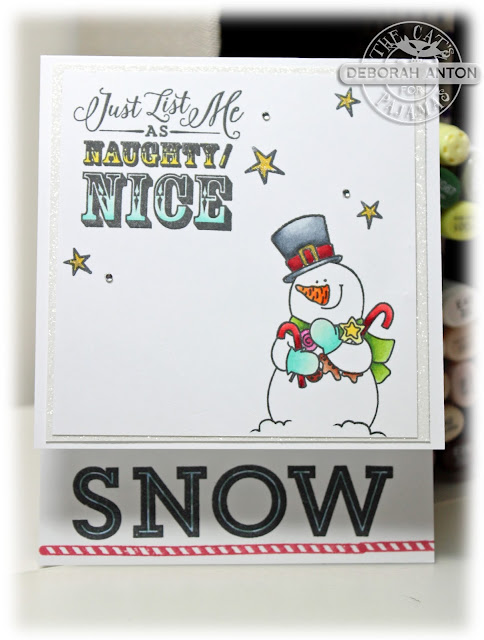 For my card, I am using the super cute set of We 3 Snowmen. They are too cute! I made my card a 3/4 cut card so that the 'SNOW' shows at the bottom of the card.